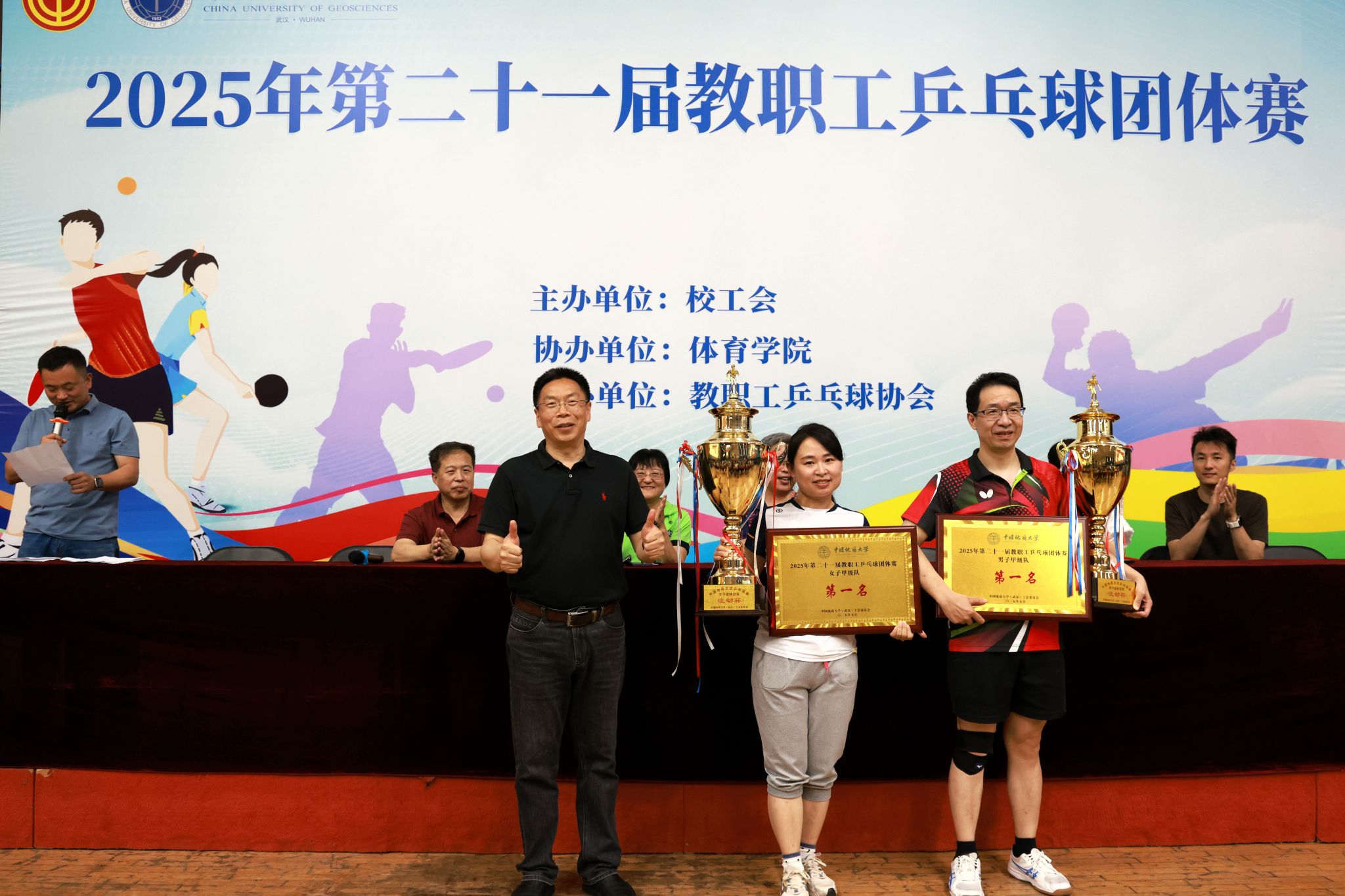 5月24日上午,万众期待的地大教职工乒乓球团体赛拉开赛幕。比赛分为甲乙两组举行,其中甲级组代表最高水平。作为上届冠军种子队,雷竞技官网女子乒乓球队在甲级组开展冠军卫冕战。在一天半的鏖战中,雷竞技官网4位铿锵玫瑰接连战胜其他5支球队,经过单打和双打共计17局比赛,以15胜2败的辉煌战绩顺利夺冠。